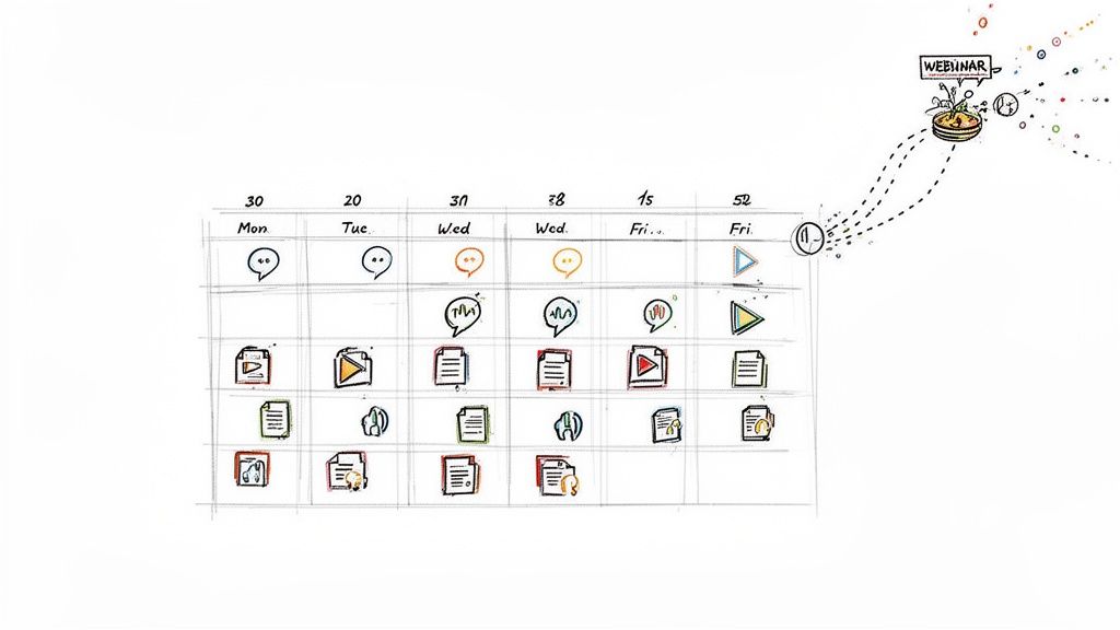A simple content calendar turns those assets into a month-long campaign. This isn't about flooding your audience. It’s a strategic "drip" campaign that nurtures leads and drives traffic long after the live event.