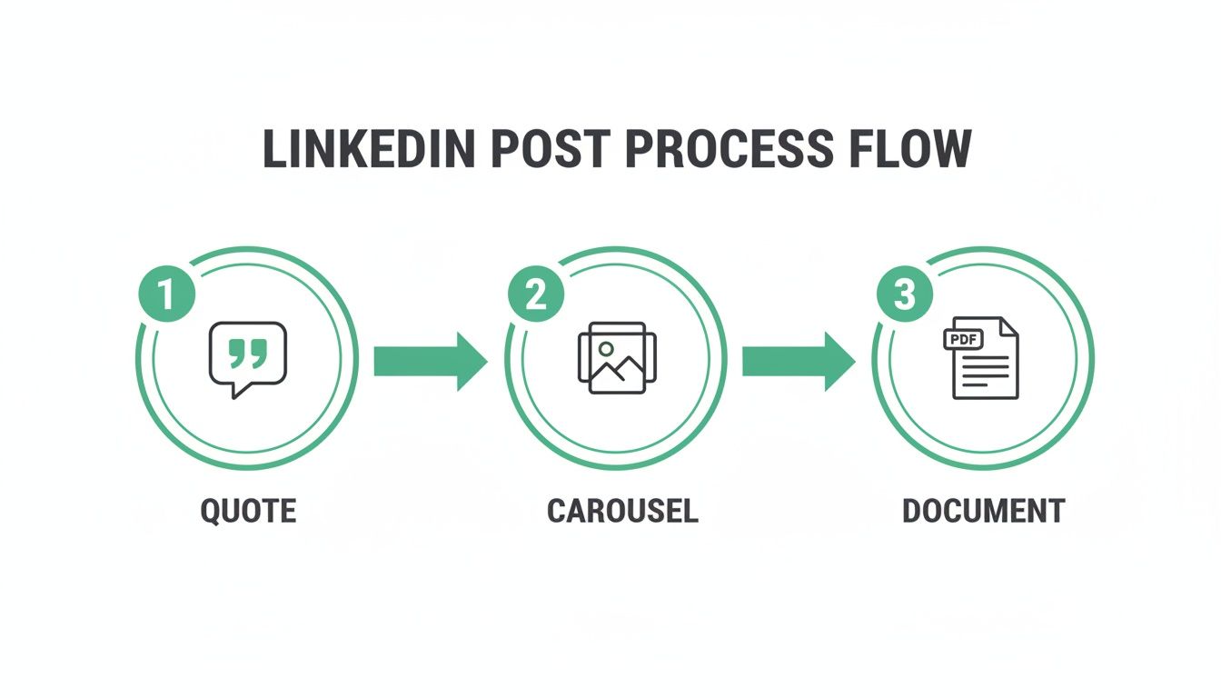 The goal here is to create a mix of content that appeals to different audience preferences. Some people love a quick, punchy text post. Others want to dig into a detailed carousel or document. A single webinar gives you all the raw material you need to create this variety, keeping your feed fresh and your audience engaged.