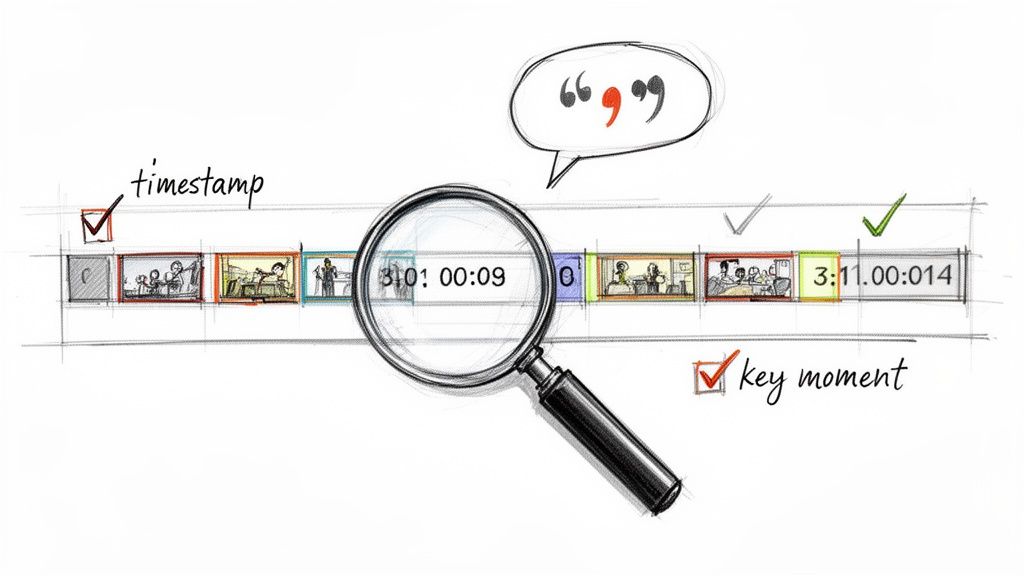 This isn’t about just hitting play and hoping for inspiration. It's a targeted hunt for the powerful quotes, actionable tips, surprising stats, and mini-stories hidden inside that recording—the moments that can stand on their own and grab attention.