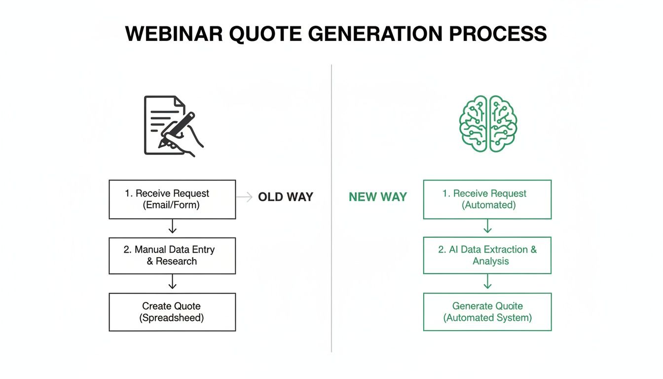 For years, pulling quotes from a webinar has been a painfully manual slog. It's a workflow that drains time, your budget, and creative energy, which is why countless hours of valuable webinar recordings sit on a server, gathering digital dust. All that potential ROI, locked away because the process is broken.