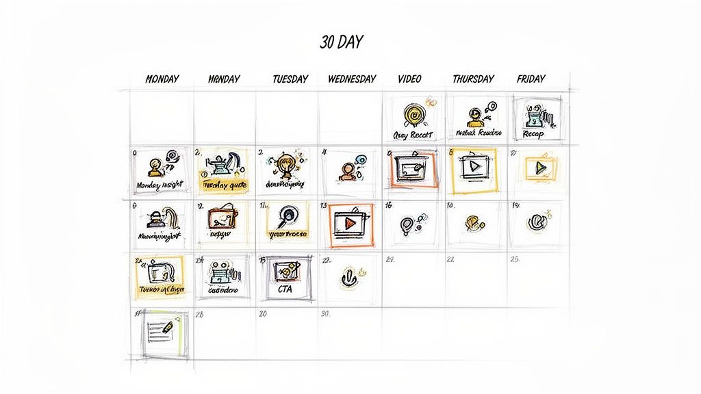 This is where you shift from just making content to building a proper, month-long campaign that keeps your audience engaged. The promise of turning one 60-minute webinar into 30 days of content isn't a gimmick; it's an achievable strategy. It hinges on a simple, rhythmic schedule that drips out different types of assets over time. You’re not just dumping everything at once—you're creating a steady drumbeat of value that keeps your brand top-of-mind.