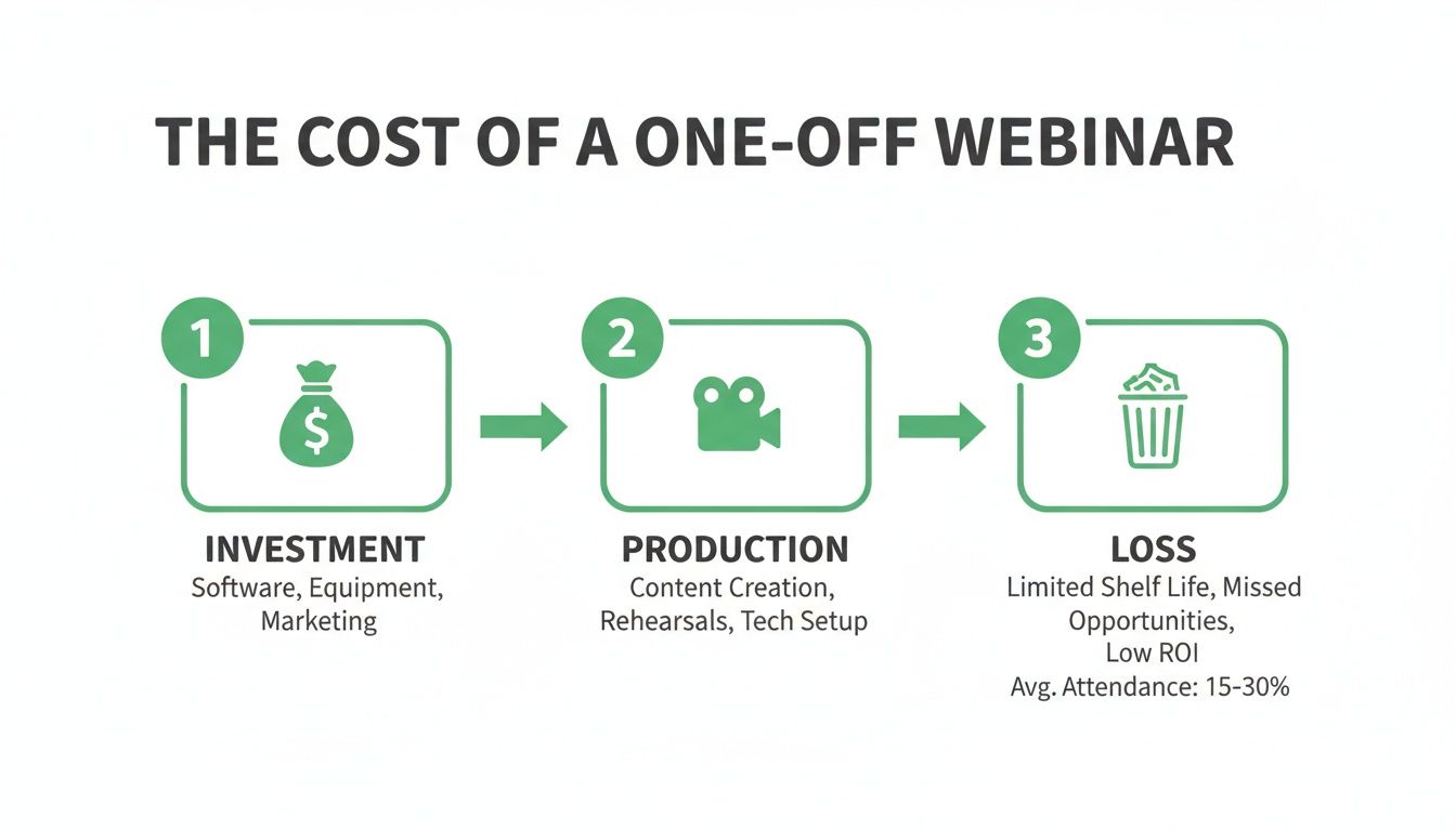 When you tally it all, a single 60-minute webinar can easily represent an investment of $5,000 to $10,000 or more. If that asset is only used once, your cost per lead remains painfully high. This is where a robust strategy to repurpose webinar content shifts from a "nice-to-have" to a financial imperative. Without it, you’re leaving an astonishing amount of value on the table.