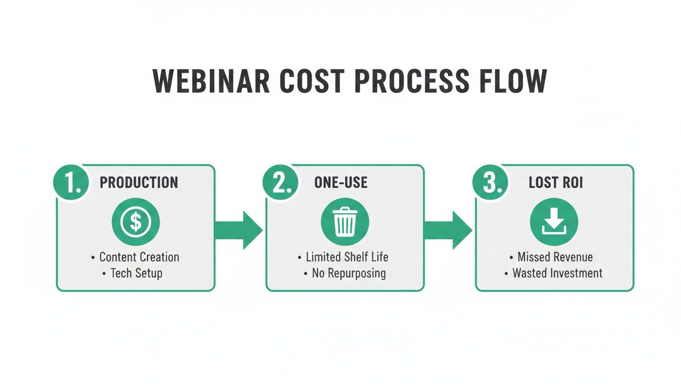 You pull off a successful live event, spend thousands of US dollars on speaker fees, platform licences and promotions, and then… nothing. Your high-value recording drifts into a forgotten folder. That’s a one-and-done webinar, and it slashes your ROI by up to 70%.